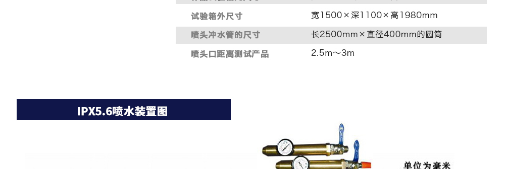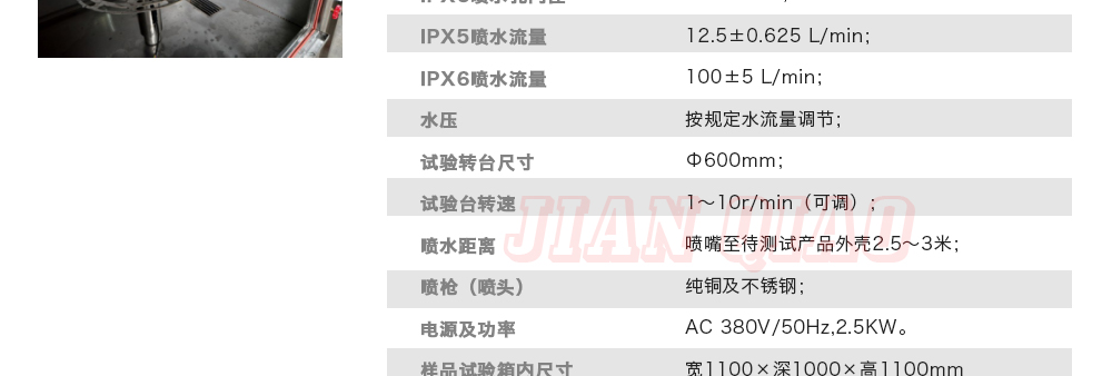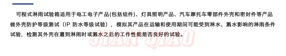 用途:可程式淋雨試驗(yàn)箱適用于電工電子產(chǎn)品(包括組件)、燈具照明產(chǎn)品、汽車摩托車零部件外殼和密封件等產(chǎn)品做外殼防護(hù)等級(jí)測(cè)試(IP 防水等級(jí)試驗(yàn)),模擬其產(chǎn)品在運(yùn)輸和使用期間可能受