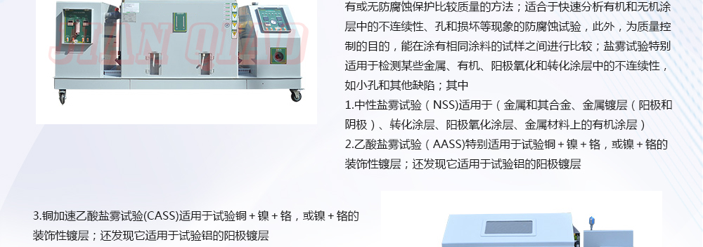 用途:鹽霧試驗箱可分為:溫度/濕度/鹽霧復合式試驗機,步入式鹽干濕試驗室,步入式鹽水噴霧試驗室,鹽水噴霧試驗機,可程式鹽水噴霧試驗機,電腦式鹽水噴霧試驗機,精密型鹽水噴霧試