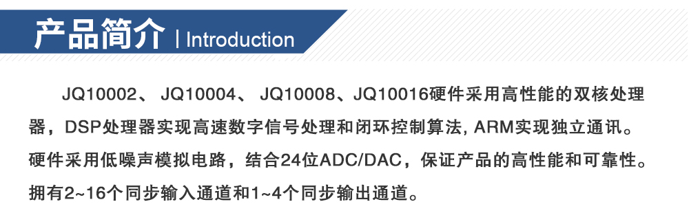 用途: JQ10002、 JQ10004、 JQ10008、JQ10016硬件采用高性能的雙核處理器,DSP處理器實現高速數字信號處理和閉環控制算法, ARM實現獨立通訊。