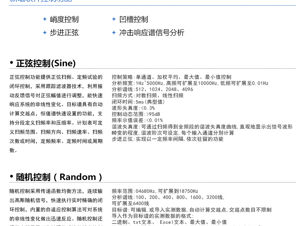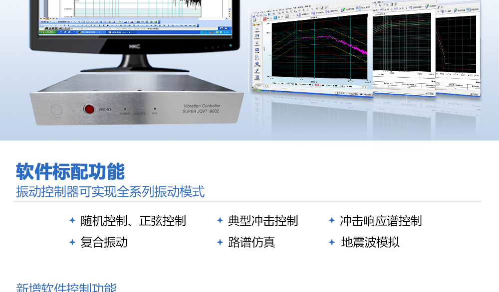 用途:振動控制器可實現全系列振動模式,包括隨機控制、正弦控制,典型沖擊控制、沖擊響應譜控制、復合振動、路譜仿真以及地震波模擬。同時,為了進一步創新振動控制技術,以適應更