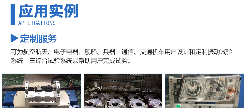 用途:可為航空航天、電子電器、艦船、兵器、通信、交通機車用戶設計和定制振動試驗系統,三綜合試驗系統以幫助用戶完成試驗。